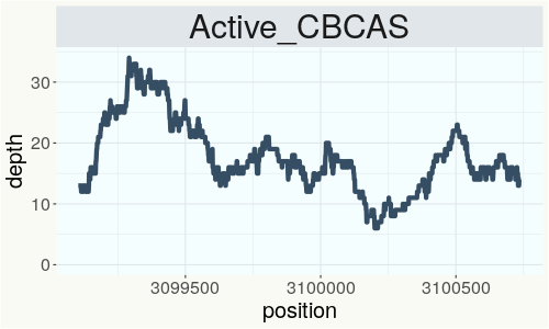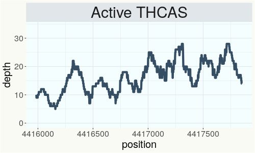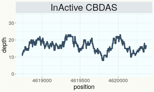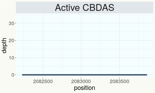 This chart represents the Illumina sequence coverage over the CBCA synthase gene.