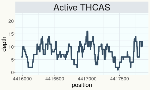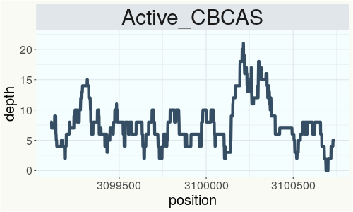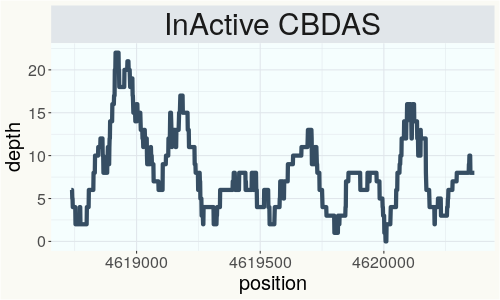 This chart represents the Illumina sequence coverage over the CBCA synthase gene.