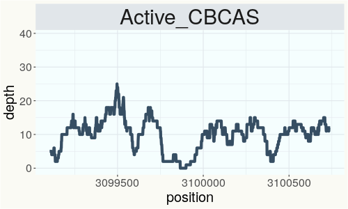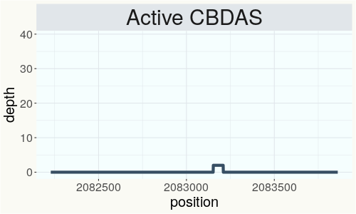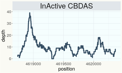 This chart represents the Illumina sequence coverage over the CBCA synthase gene.