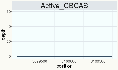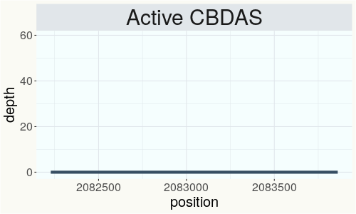 This chart represents the Illumina sequence coverage over the CBCA synthase gene.