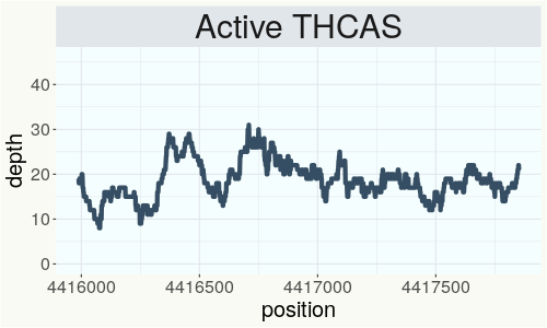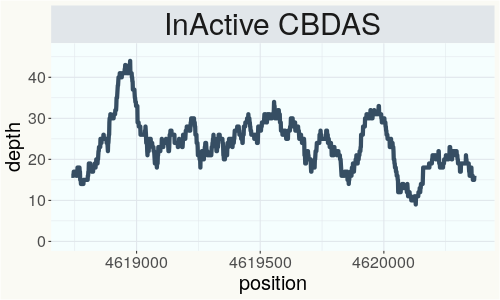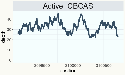 This chart represents the Illumina sequence coverage over the CBCA synthase gene.